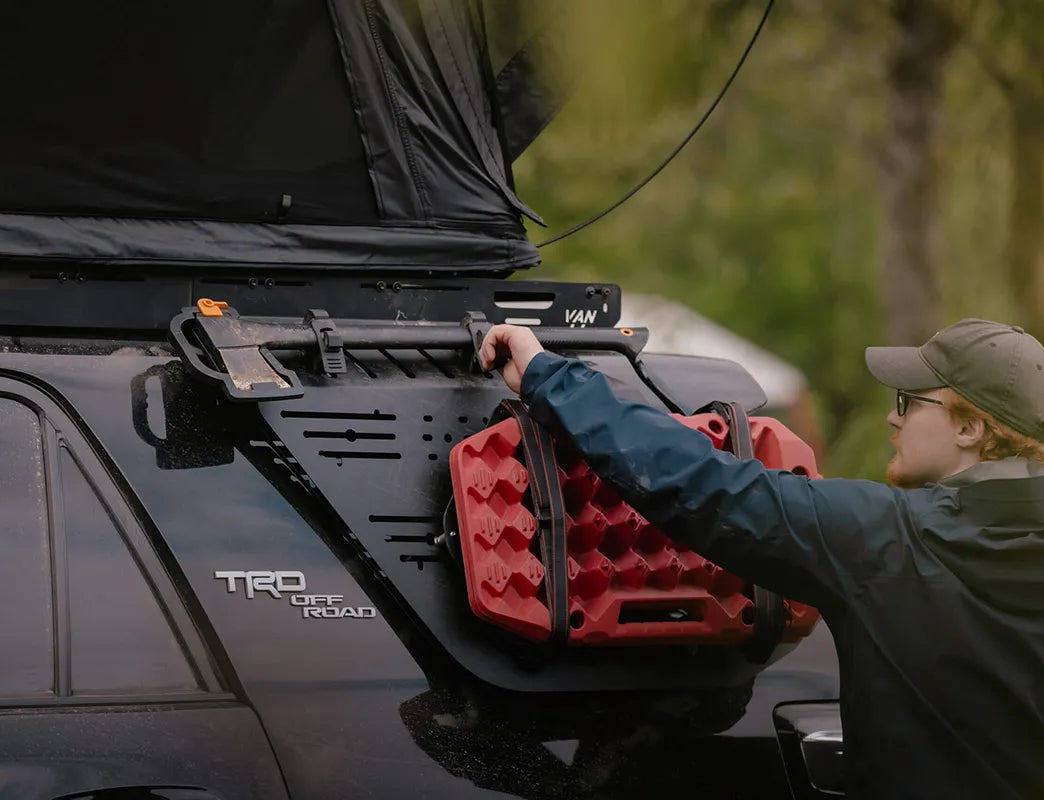 From shovels and traction boards to fuel and water, these panels keep your essentials locked down. Designed to fit Rotopax and most major rack systems, they make mounting fast, secure, and hassle-free — no tools, no fuss, no wasted space.